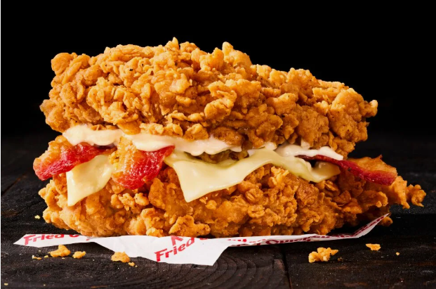 One of the most infamous fast-food creations ever — no bun at all. Instead, two ultra-crispy fried chicken fillets sandwich bacon, melted cheese, and a creamy pepper mayo. It’s salty, smoky, cheesy, and unapologetically indulgent. The trick to the perfect Double Down is thin chicken fillets with a super crunchy crust, so the “chicken buns” hold everything together without falling apart.